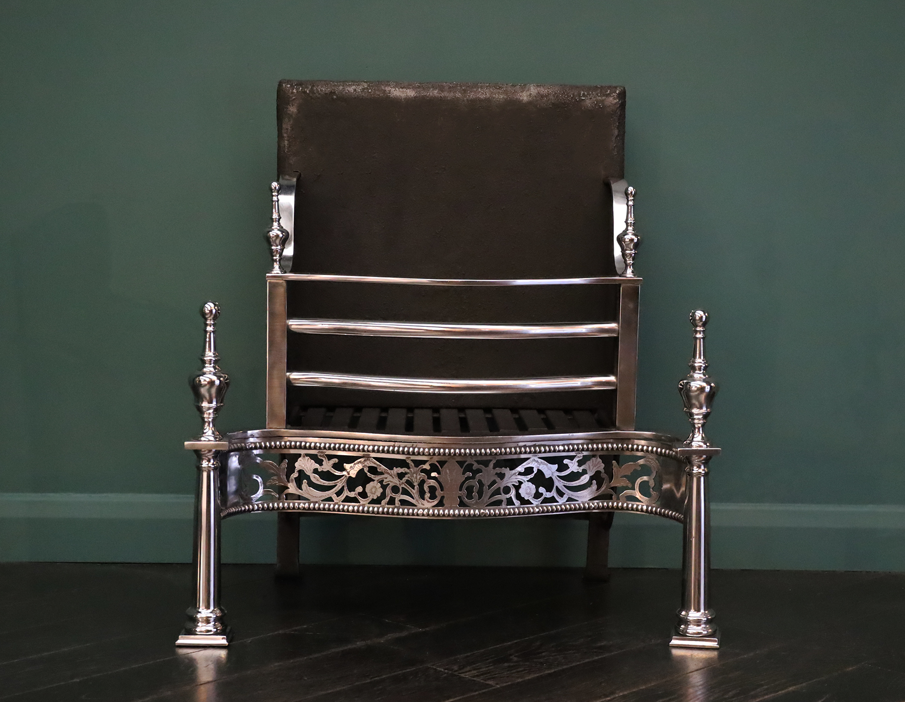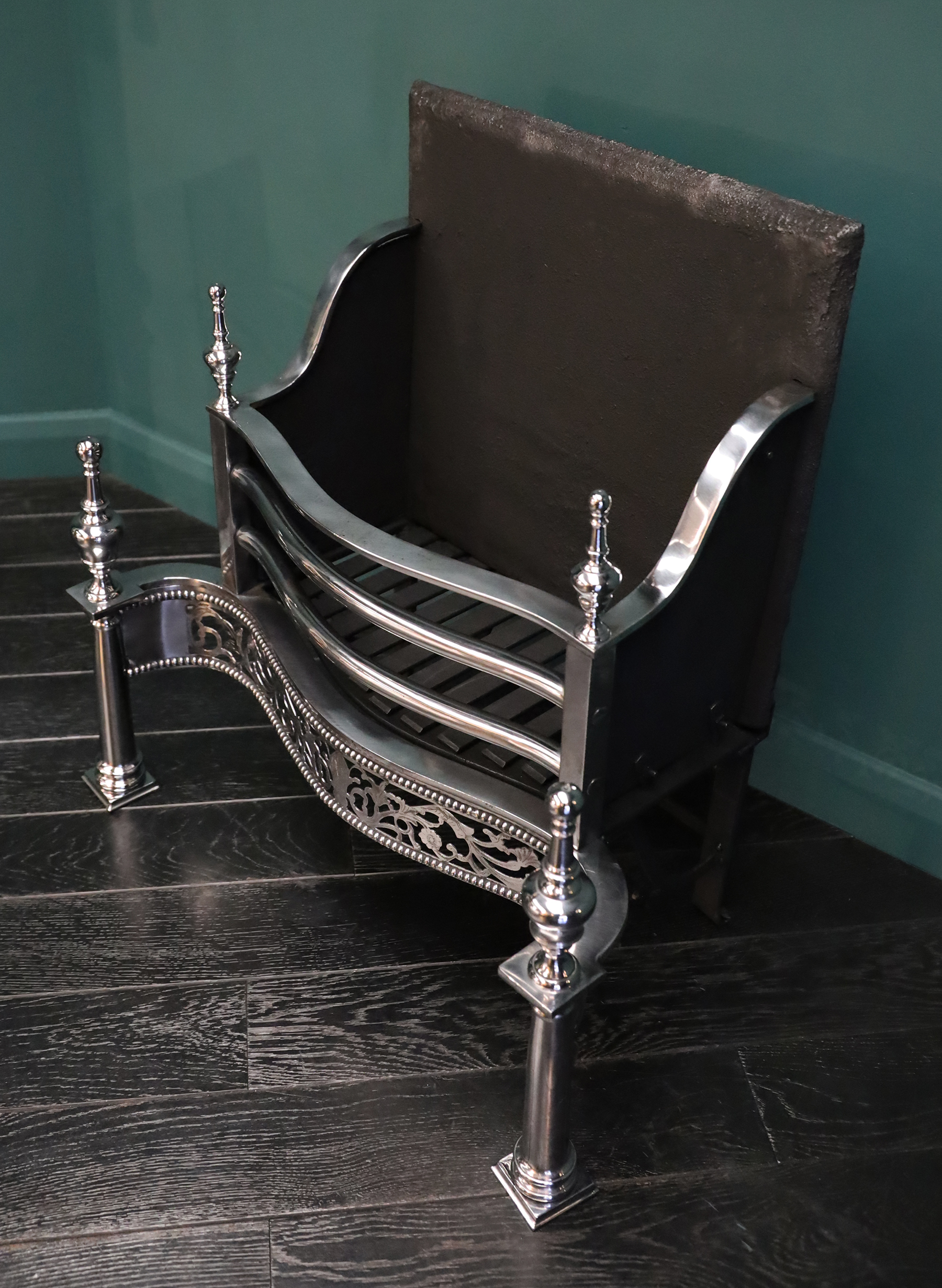 Free-Standing Polished Steel Fire Grate in the Georgian Form